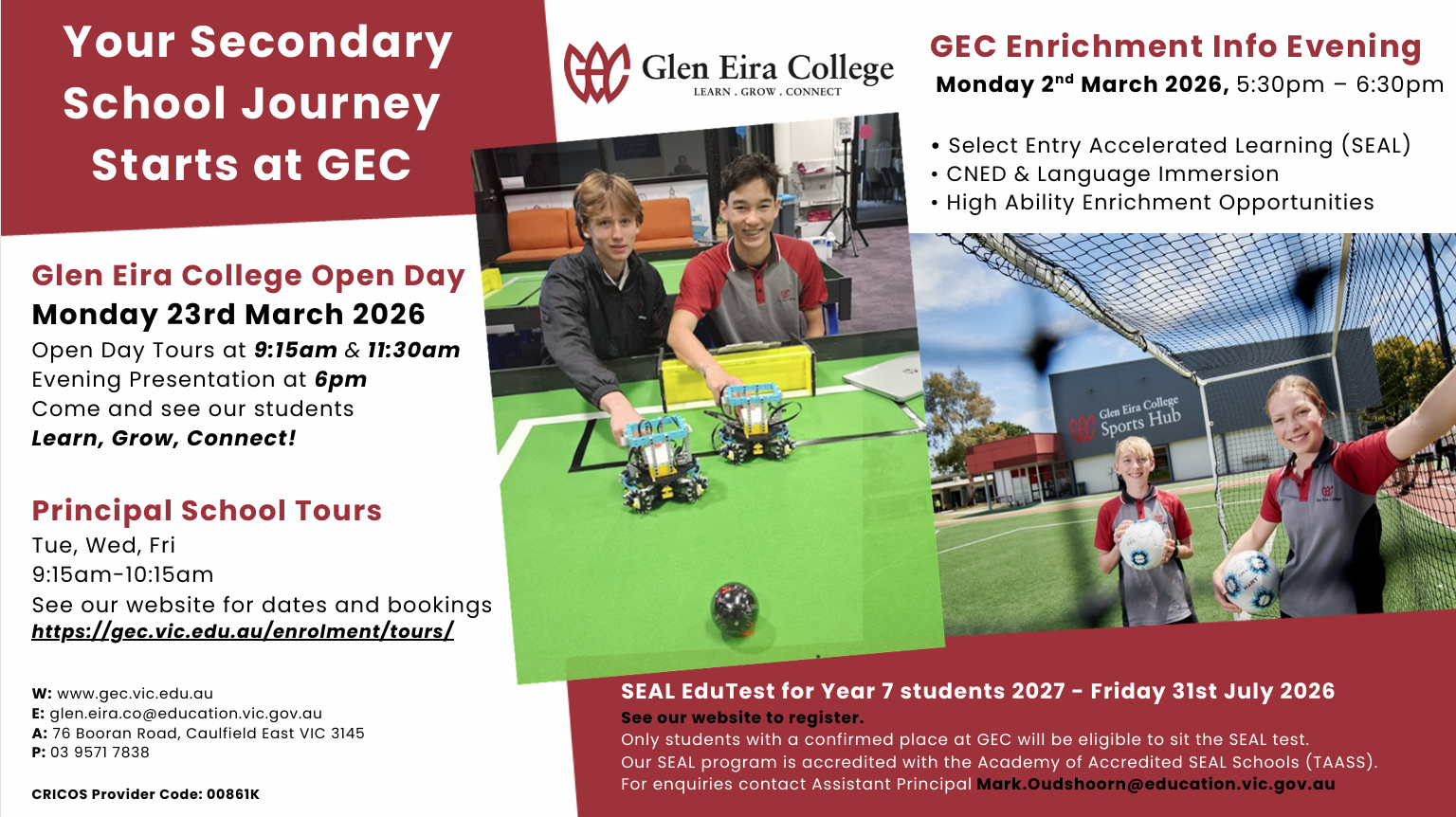 Lucy Battersby (mother of Fred 3/4A), Maxine Willow (mother of Gwen 5/6A), Megan Lim (mother of Eleanor 3/4A) and Ricky Feigin (father of Lia 5/6A and Hana 3/4A) all return for 2026. We currently have two parent positions available for this year’s Council; filling these is a priority for the school, and it would be terrific to get some representation from our junior grades (Prep – Year 2). Please contact me via the school office or catch up with any of our current council members to indicate your interest.