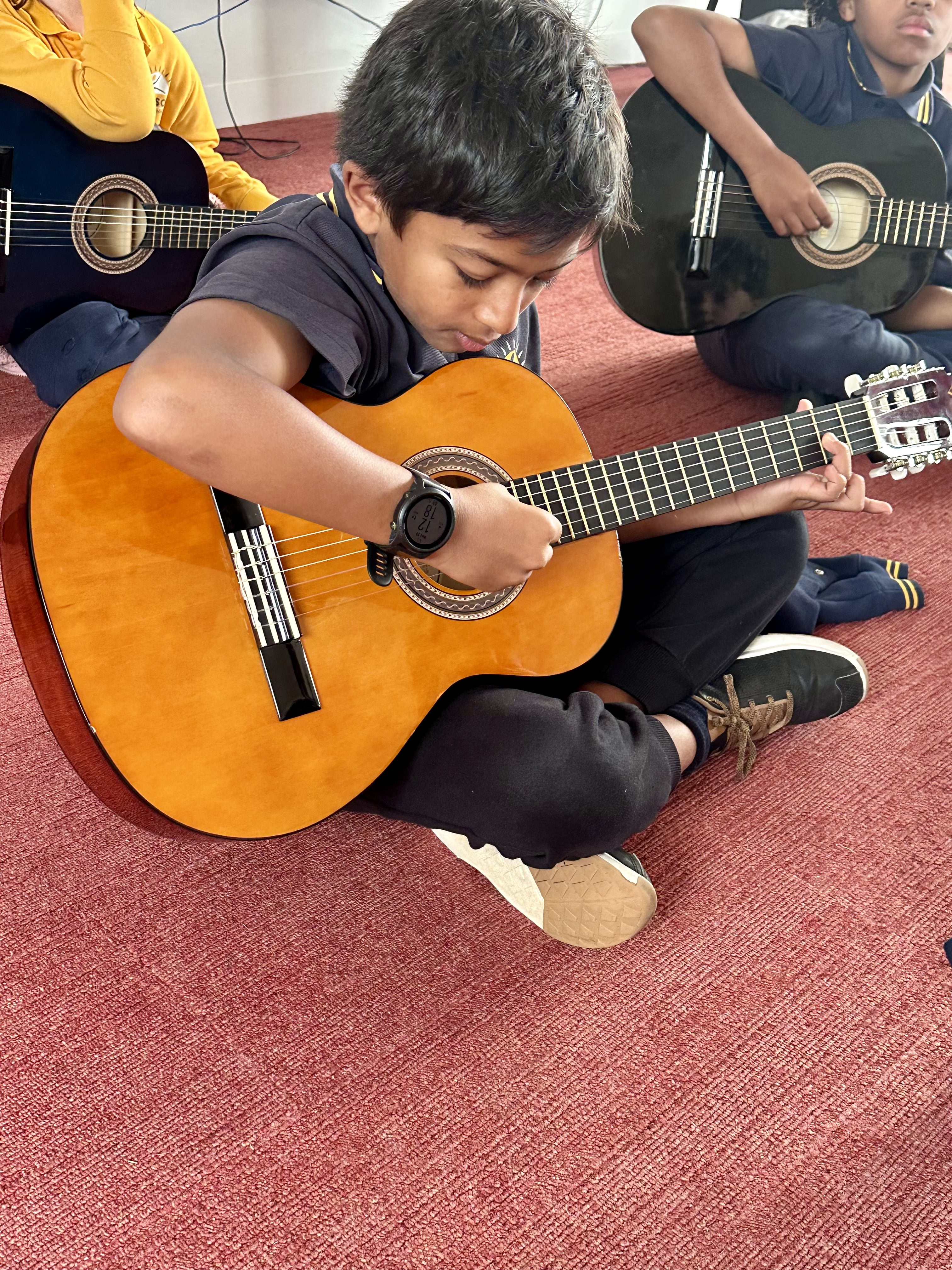 Our specialist music teacher leads engaging weekly classes where students enjoy rich and varied musical experiences. Lessons include singing, rhythm games and the use of a wide range of instruments, helping students develop key musical skills. They are also introduced to diverse musical genres from different cultures and time periods, broadening their appreciation and understanding of music. Beyond the classroom, students can take part in choir, band, school performances. These opportunities allow them to build confidence, work collaboratively and deepen their love of music in fun, creative and inspiring ways.